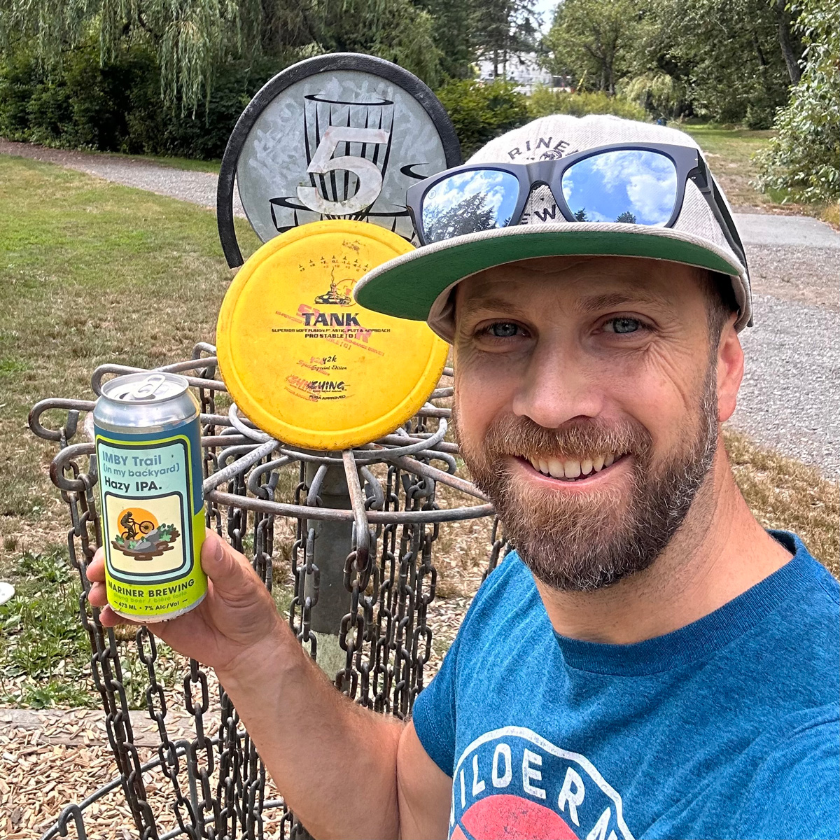 The owners of Mariner Brewing in Coquitlam are big disc golf fans, and the brewery even makes two related beers. According to co-owner, Gil Desaulniers, “A beautiful thing about Coquitlam is all parks are allowed alcohol so playing disc golf with beer is fully allowed at Mundy Park!” Indeed, it is not uncommon to see disc golfers enjoying a cold beverage while playing, but of course, heed local regulations and be sure to carry out your empties!