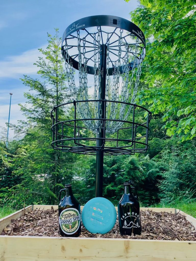 Tapworks Brewing in Gibsons is all in. Owner Geoff Gornall said, “We sponsor a tournament with the local disc golf association, have done branded discs, and have tossed a few ourselves over the years.” Nearby, Persephone Brewing once had a course set up on its farm so you can also check in with them to see if that is still an option.